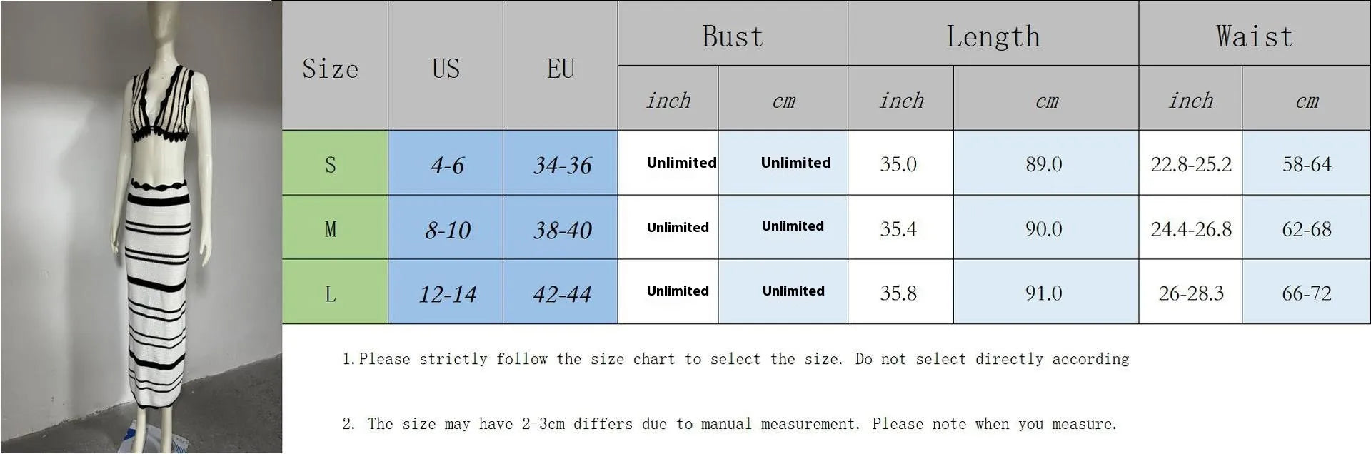 This set offers a perfect blend of bohemian charm and modern elegance, featuring a contrast crochet bralette and fishtail maxi skirt. Crafted from premium knitted fabric, the bralette showcases a flattering V-neckline with dark scalloped trim, adjustable straps, and a chic back tie. The matching fishtail maxi skirt hugs the body with a comfortable elastic waistband, highlighted by bold stripes and scalloped detailing that flow effortlessly into a fishtail hem. Ideal for Spring/Summer 2024, this set exudes a stylish allure, perfect for beachwear or any special occasion.